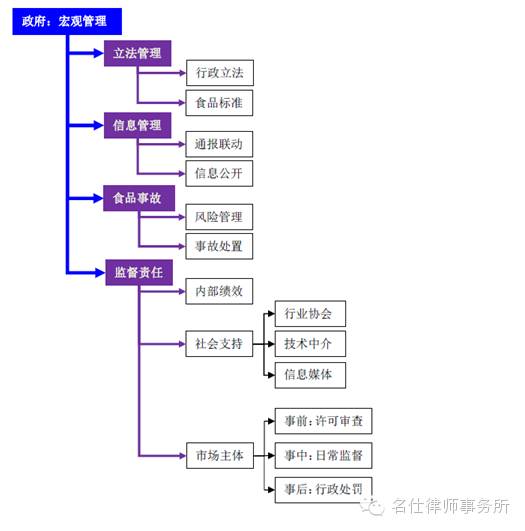 【编注】本文系名仕律师事务所律师原创作品,如需转载,请注明作者信息及来源:名仕律师事务所(微信号:mentorslawfirm)黄乐,律师,法学学士,专业从事行政法法务20年,涉及工商、税务、土地、规划、房屋、城建、气象、卫生、证券等多个行政管理领域的法律运用。在新食安法的大前提下,国务院已着手修订《食品安全法实施条例》,国家食药部局已经公布一些行政规章,如《食品生产许可管理》等,更多的行政立法活动还在紧锣密鼓地进行着。除法律、法规以外,在食品市场行政管理中具有重要地位的食品安全标准,在新食安法中规定:首先,食品安全标准是强制标准,意味着必须执行;其次,国家标准、地方标准、企业标准的制定、公布、备案程序的初步框架。新食安法还作了两项特殊规定:1.在新标准制度或者修订标准前,由国家卫计委会同有关部门制定临时监管标准,作为生产经营与监管的依据;2.进口食品在缺乏中国国家标准的时候,由境外生产企业、境外出口商或者中国进口商负责向出入境检验检疫局提交所执行的相关国家(地区)的标准或者国际标准,经国家卫计委审查后决定暂予适用。另外,各级政府还需实施将食品安全工作列入国民经济和社会发展规划、工作经费列入财政预算、确定各部门管理职责及监管计划、监管计划等宏观管理。政府的信息活动包括两个方面:其一,政府内部的信息通报以形成联动机制,如风险监测与风险评估的数据采集、危险信息通报,又比如监督机构将食品生产经营者严重违法行为信息向投资主管部门、证监督管理管理机构、金融机构进行通报;其二、政府信息公开并提供免费下载,从而减少公众因为信息不对称而带来的利益受损,公布的内容除了新食安法第118条所规定的三大重要信息以外,还有散见于各章节的信息公布,比如食品安全标准、可入食品的中药材目录、备案的进口商目录、经注册与备案的特殊食品目录、被准许声称的保健功效目录、生产经营企业的诚信档案资料;公布方式上,新食安法明确规定各级食药、质监部门应当公布电子邮件、联系地址、电话,接受公众咨询、投诉与举报。(一)食品安全风险监测与风险评估共同构成的食品安全大数据库,包括:国家风险监测计划:由国家卫计委会同食药总局、质监总局制定与实施风险监测计划,并根据即时信息由各部对监测计划进行调整;省级风险监测方案:根据国家风险监计划,由省卫计委会同同级食药局、质监局制定与调整本行政区域内的风险监测方案。风险监测活动:监测技术机构根据监测计划、监测方案开展监测活动,采集数据并报送数据与分析结果。由国家卫计委组织风险评估专家委员会,根据风险监测信息、数据对食品、添加剂、相关产品中的生物性、化学性、物理性危害因素进行评估。评估结论将成为制定、修订国家标准或者确定重点监管内容等重要活动的内容。(二)对食品安全事故后的国家处置,包括:在发生事故前的国家及地方应急预案的制定,发生事故后的救治、通报、调查等处置措施。新食安法对于食品生产经营者设定了“应对其所生产经营的食品安全负责”,同时对“政府及政府各部门”设定了“对食品安全监督管理工作负责”。政府的监督管理责任主要从三个方面来规制:上级政府对下级政府、政府对其工作部门的食品安全监督管理工作进行评议、考核,当政府工作部门或政府未发现食品安全系统性风险时,工作部门所在政府、上级政府可以对该部门或下级政府的主要负责人进行责任约谈。比如,食品安全检验机构为监督检查提供检验证据,认证机构的认证结论是让监督部门对被认证食品生产经营企业的生产质量体系给予信赖的证据,信息媒体可以帮助政府公布食品安全信息以防止虚假信息的扩散,食品行业协引导行业自律从而促进食品生产经营者的诚信自律度,消费者协会帮助保护消费者维权。当然,政府在获得这些社会力量的支持的同时,也负有对这些社会力量的监督管理职责,比如检验机构或者认证机构出具虚假结论时对其施以行政处罚,媒体编造或扩散虚假信息对其处以行政处罚及行政处分责任,等等。主要是通过事前审查、事中监督、事后处罚三个方面来完成。具体内容详见第二张图。